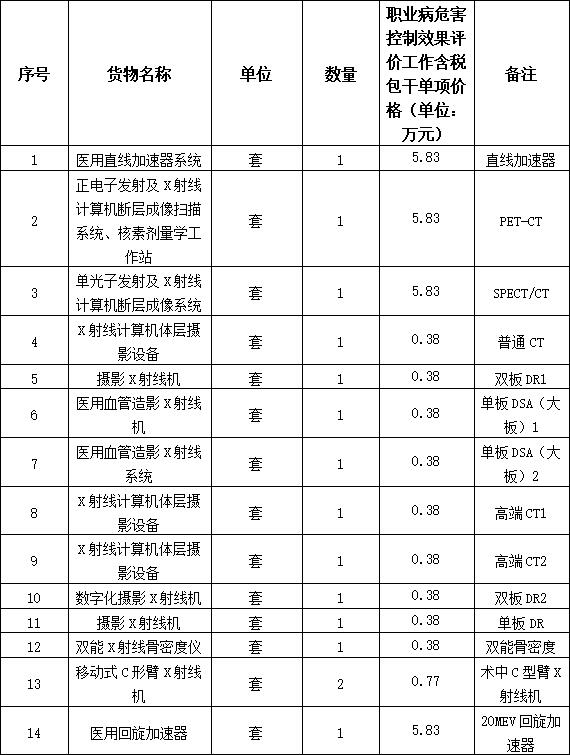 1.1.2服務(wù)內(nèi)容: 綿陽(yáng)三江醫(yī)院項(xiàng)目(一期)職業(yè)病危害控制效果評(píng)價(jià)工作全部工作內(nèi)容:進(jìn)行現(xiàn)場(chǎng)驗(yàn)收檢測(cè)并編制職業(yè)病危害放射防護(hù)控制效果評(píng)價(jià)工作報(bào)告書(shū),協(xié)調(diào)市衛(wèi)健部門(mén)召開(kāi)職業(yè)病危害控制效果評(píng)價(jià)工作報(bào)告專(zhuān)家審核會(huì)議,通過(guò)專(zhuān)家評(píng)審,并最終取得批復(fù)。具體設(shè)備如下: