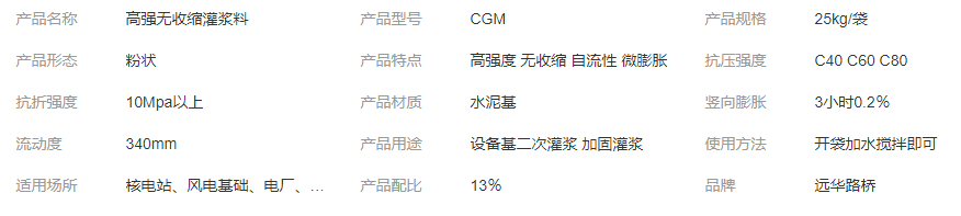 遠(yuǎn)華牌 機(jī)械設(shè)備無(wú)墊安裝 水泥基二次高強(qiáng)灌漿料 H-80型