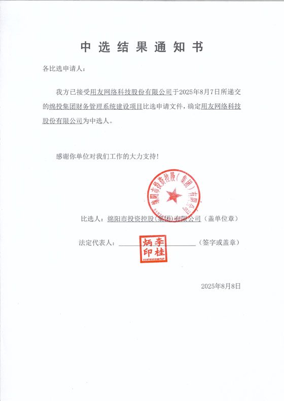 綿投集團財務(wù)管理系統(tǒng)建設(shè)項目中選結(jié)果通知