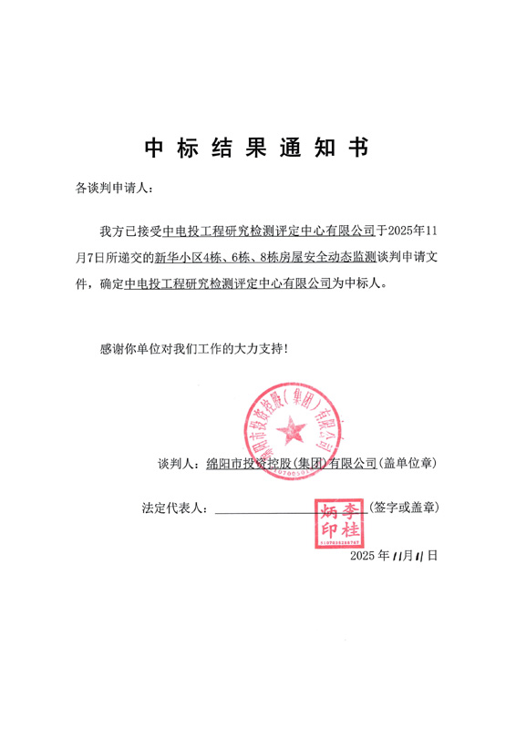 新華小區(qū)4棟、6棟、8棟房屋安全動(dòng)態(tài)監(jiān)測(cè)中標(biāo)結(jié)果通知