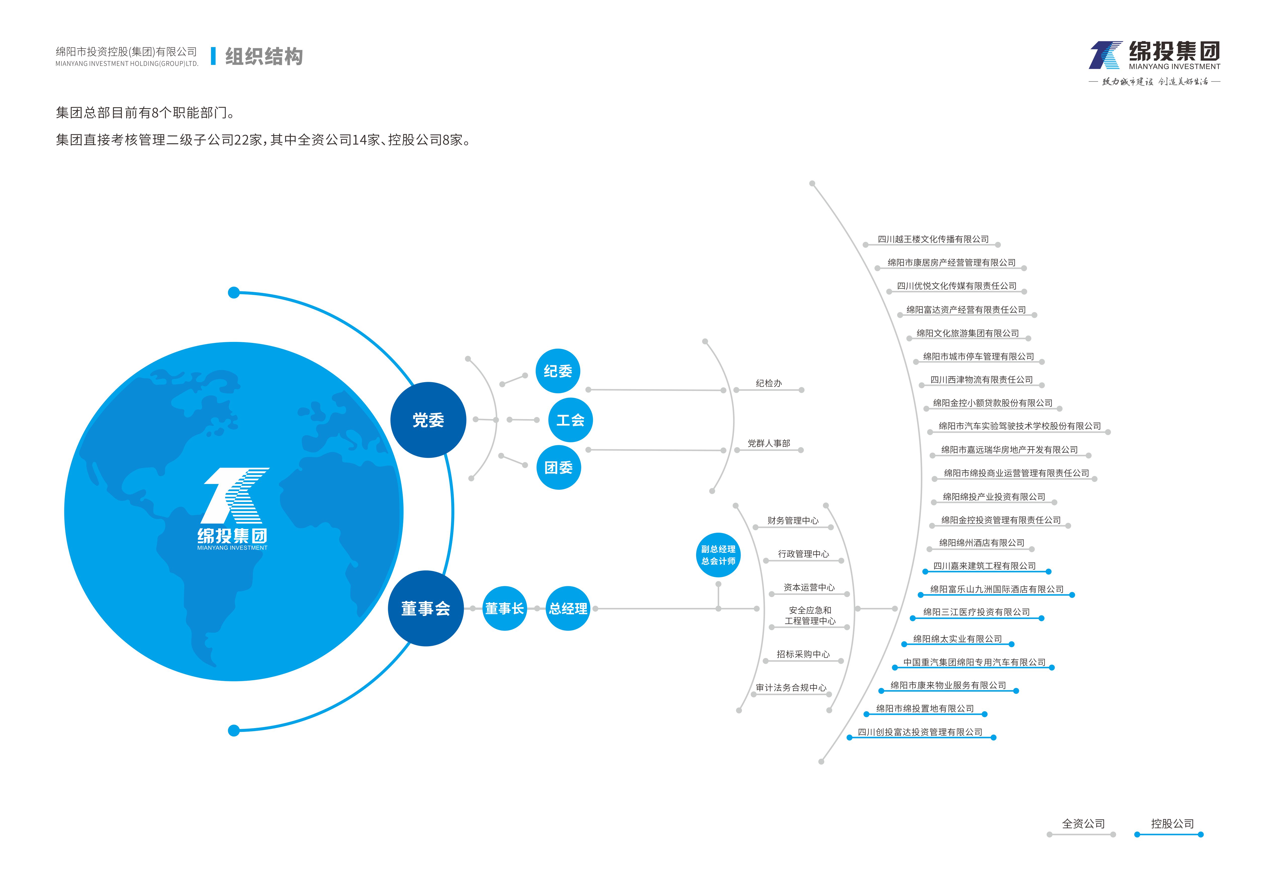 集團直接考核管理二級子公司22家,其中全資公司14家、控股公司8家。