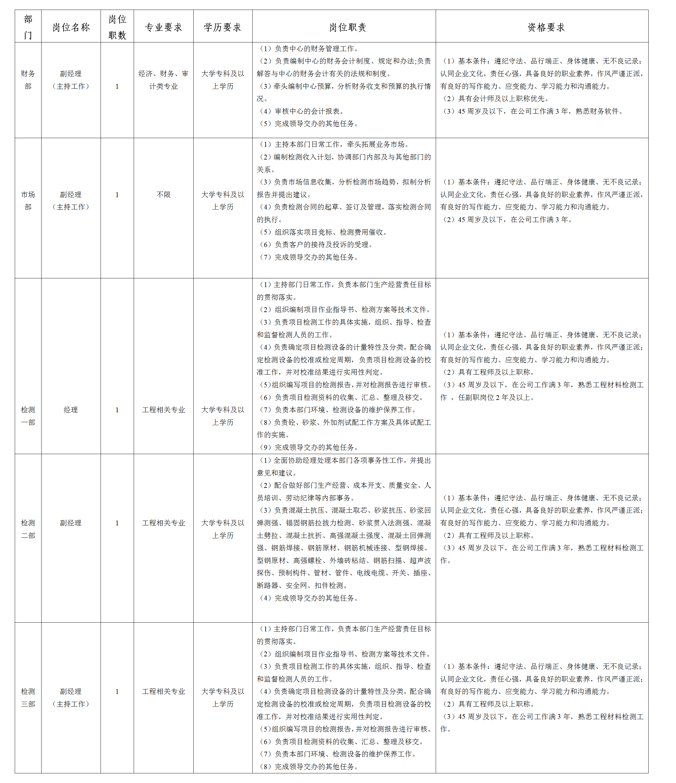 綿陽(yáng)市建設(shè)工程質(zhì)量檢測(cè)中心有限責(zé)任公司關(guān)于部門(mén)經(jīng)理、副經(jīng)理崗位內(nèi)部競(jìng)聘的公告