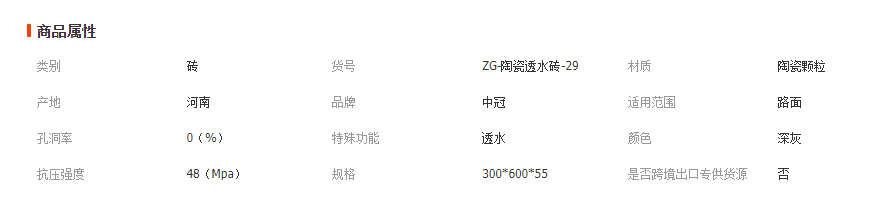 陶瓷顆粒環(huán)保的透水磚 300*600停車位矩形低吸水率瓷磚 河南中冠