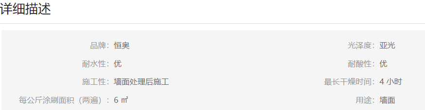 系列墻面經(jīng)過一定處理后施工,遮蓋力強(qiáng)、附著力強(qiáng)、抗堿、防污、防霉。一般涂兩次重涂時(shí)間2-4小時(shí),溫度低于5度請(qǐng)勿使用,有效時(shí)間12小時(shí)