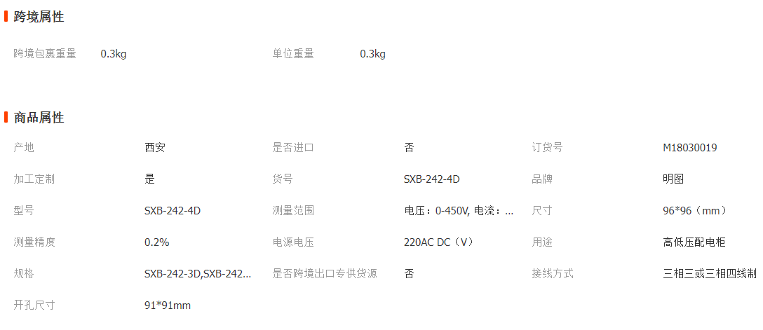 SXB-242系列三相智能電測表是一種可設置CT和PT變比,具有模擬量變送輸出、繼電器輸出等功能,配備RS485通訊接口的智能系列儀表??捎糜跍y量三相回路中的電流、電壓、功率、頻率、電度等參數(shù)值。該系列產(chǎn)品以安裝簡便,操作簡潔、準確度高特點,主要替代了目前用于400V低壓柜中的指針式儀表、電量變送器等測量、顯示、變送裝置。