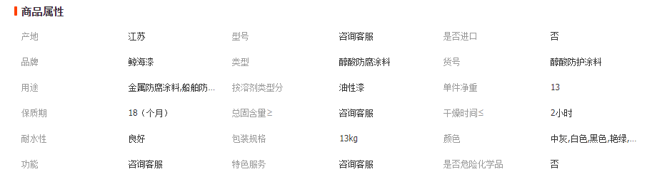 鯨海漆 高閃點醇酸防護涂料調和漆 管道欄桿鐵門防銹防腐漆金13KG