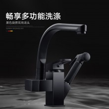 黑色廚房菜盆抽拉式水龍頭 多功能增壓噴槍機器人冷熱混水龍頭