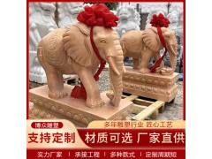 晚霞紅石雕大象一對(duì)戶外園林庭院酒店景觀動(dòng)物石雕漢白玉大象雕塑