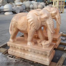 晚霞紅石雕大象一對(duì)戶