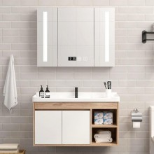 北歐組合浴室柜現(xiàn)代簡約小戶型衛(wèi)生間免漆洗漱臺輕奢實(shí)木智能鏡箱
