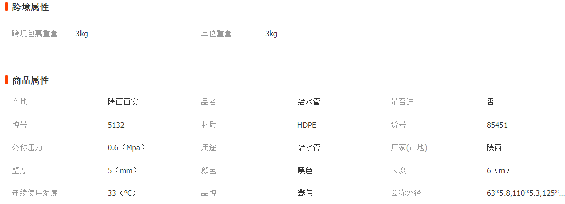 鑫偉PE全新料給水管大口徑直管63-125黑色聚乙烯電熔管灌溉排水
