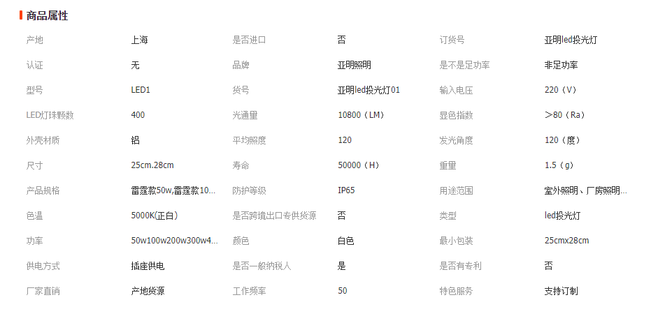 亞明led投光燈戶外防水大功率100w200w400w廣告射燈超亮工地照明