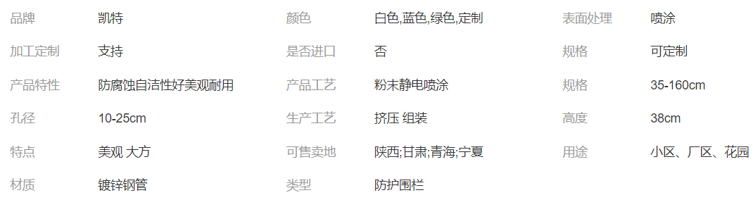 產(chǎn)品介紹:廠區(qū)圍墻圍欄是采用鋅合金材料制作的用于不同部位、具備不同功能性的圍護欄桿,由于其后期是用靜電噴涂處理表面層,使具有高強度、高硬度、外觀精美、色澤鮮艷等優(yōu)點,成為住宅小區(qū)、工廠院校、道路交通等使用的主流產(chǎn)品。傳統(tǒng)的護欄使用鐵條材料,需要借助電焊等工藝技術(shù),而且質(zhì)地較軟、容易生銹、色彩單一。鋅鋼陽臺護欄完美地解決了傳統(tǒng)護欄的缺點,而且價格適中,成為傳統(tǒng)各式護欄材料的替代產(chǎn)品。鋅鋼護欄采用無焊穿插組合方式進行拼裝(也有工藝需要局部焊接,但要在噴涂前做補鋅處理),基材厚度是不銹鋼的2-3倍,500多種顏色可供選擇,表面采用聚酯抗氧化粉末靜電噴涂,增強了護欄的抗氧化抗紫外線、耐候耐腐能力。以鋅鋼為基材,用在建筑護欄中的產(chǎn)品具體的主要有:陽臺護欄、防護窗、樓梯扶手、柵欄、花園圍欄、百葉窗、空調(diào)圍欄、道路護欄。工業(yè)用圍欄(如廠區(qū)圍欄、商業(yè)場地圍欄)、農(nóng)業(yè)用圍欄(如田地圍欄,畜牧圍欄)、民用圍欄(如建筑物頂圍欄,圍欄墻等)、公共設(shè)施圍欄(如道路隔離欄)等等。 使用比較廣泛。產(chǎn)品實拍展示: