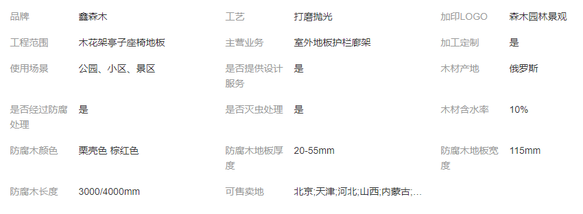 防腐木地板,是將木材經(jīng)過特殊防腐處理后,得到的具有防腐爛、防白蟻、防真菌的功效的地板。專門用于戶外環(huán)境的露天木地板,并且可以直接用于與水體、土壤接觸的環(huán)境中,是戶外木地板、園林景觀地板、戶外木平臺(tái)、露臺(tái)地板、戶外木棧道及其他室外防腐木涼棚的首選材料。